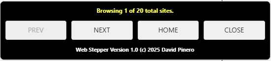 Web Stepper was developed vibe-style in conversations using Google Gemini AI, and tweaked and refined for distribution by myself, David Pinero. You can learn more about me at my personal blog Explaining Myself. A link to my personal blog is available in the Web Stepper application.